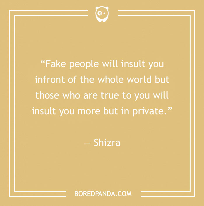 “Fake people will insult you infront of the whole world but those who are true to you will insult you more but in private.” ― Shizra