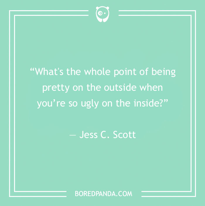 “What's the whole point of being pretty on the outside when you’re so ugly on the inside?” ― Jess C. Scott
