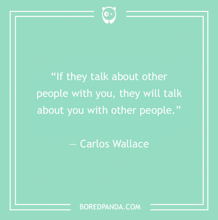 “If they talk about other people with you, they will talk about you with other people.” ― Carlos Wallace