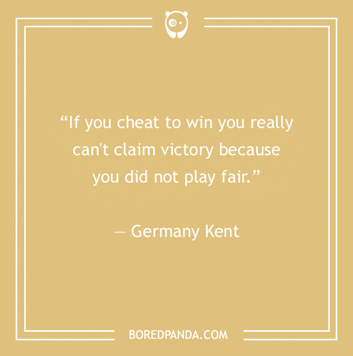 “If you cheat to win you really can't claim victory because you did not play fair.” ― Germany Kent