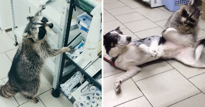 This Raccoon That “Works” At A Vet Clinic In Russia Has A Special Ability To Calm Sick Dogs