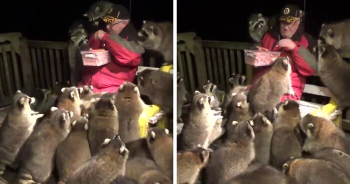 Load More Replies...My biggest concern with these issues is when that lovely old man dies, these raccoons are going to find their easy food source dried up. I think it said they had been doing this for 25years, there would be some raccoons that have grown up relying on him for a fail safe diet. We all love seeing wildlife living around us peacefully and it is always tempting to feed animals to bring them a little closer and try to encourage some trust with you as a homeowner....BUT...we must reinforce that the food we leave isn't every day, its not regular or to be relied on. It isn't about us, its about protecting wild animals from picking up habits that may in turn endanger them....