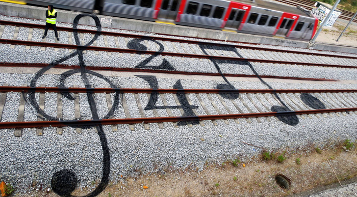 Trains and railroad tunnels have always been popular canvases for street artists, but this work by Portugese artist Artur Bordalo is probably the first time we’ve seen street art done on the tracks themselves.