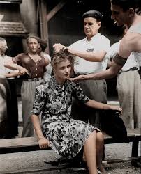 these women were publicly shamed after the war, stripped and heads shaved in public.