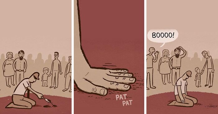 The artist previously shared that it all started when he wrote a play that he wanted to adapt into a graphic novel. However, before starting such ambitious plans, the artist began with a shorter medium, like comics. This explains why some of the cartoons span nine, twelve, or even more panels, giving them more depth and complexity.