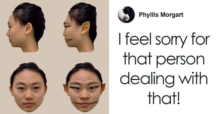 Then, he noticed the same demonic faces—with ears, noses, and mouths stretched back—on other people as well.