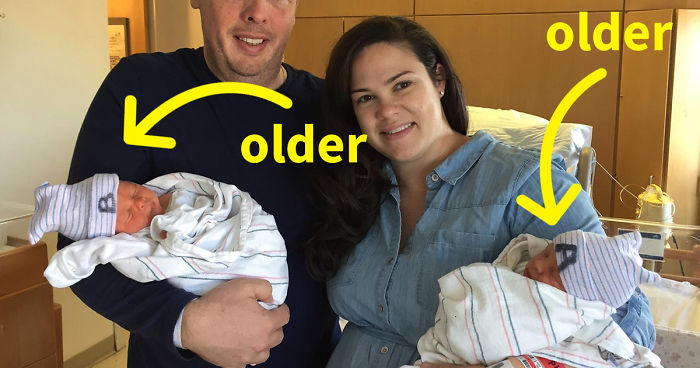 On an early Sunday morning, Emily and Seth Peterson have welcomed two twin boys into their family, Samuel and Ronan. However, what’s insteresting is that although Samuel was born first, according to their birth certificates, Ronan is actually older… Now that’s confusing.