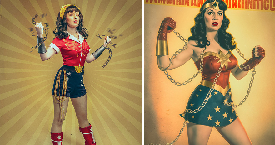 I. . .do like the original better here. In the first, she's a no-nonsense, I-know-I'm-tough type of girl, who breaks her chains. In the second, she looks vulnerable and she's more of an object to look at. Just an opinion, though, I love the post overall.