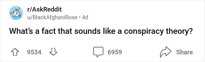 The r/AskReddit online community shared some obscure facts that sound like they could easily be conspiracy theories. However, they’re all true. It just goes to show that you shouldn’t judge a book (just) by its cover. Scroll down for a taste of some odd and even uncomfortable facts about the world.