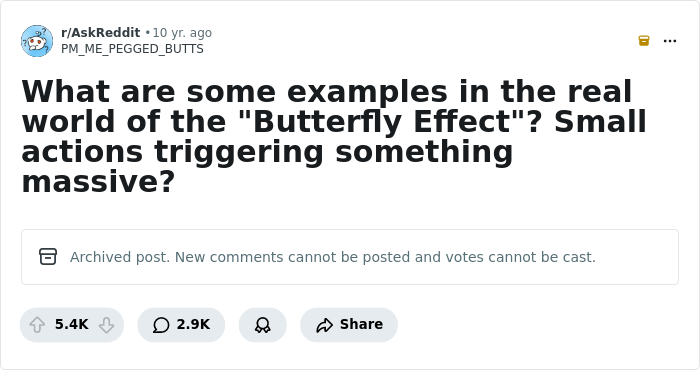 The Decision Lab explains that the idea of the butterfly effect is rooted in chaos theory. At its core, it posits that tiny changes in systems can create large and non-linear consequences elsewhere, over time.