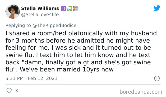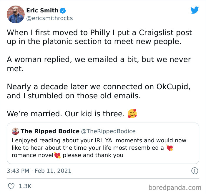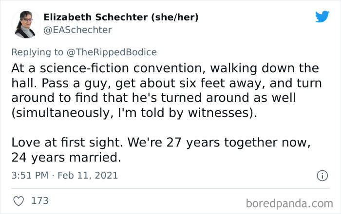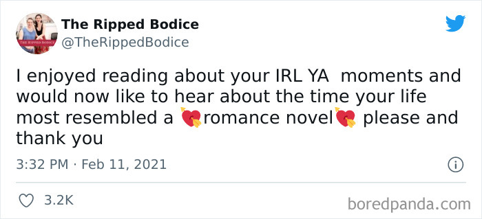 The suggestively named California-based bookstore ‘The Ripped Bodice’ asked its followers on Twitter to share the times that their lives most resembled romance novels. And, wow, did they deliver! The stories are fantastic and odds are that they might make you believe in love at first sight, true love, and soulmates all over again. As a huge literature lover, I’m happy to see the world of books overlap with real life so much.