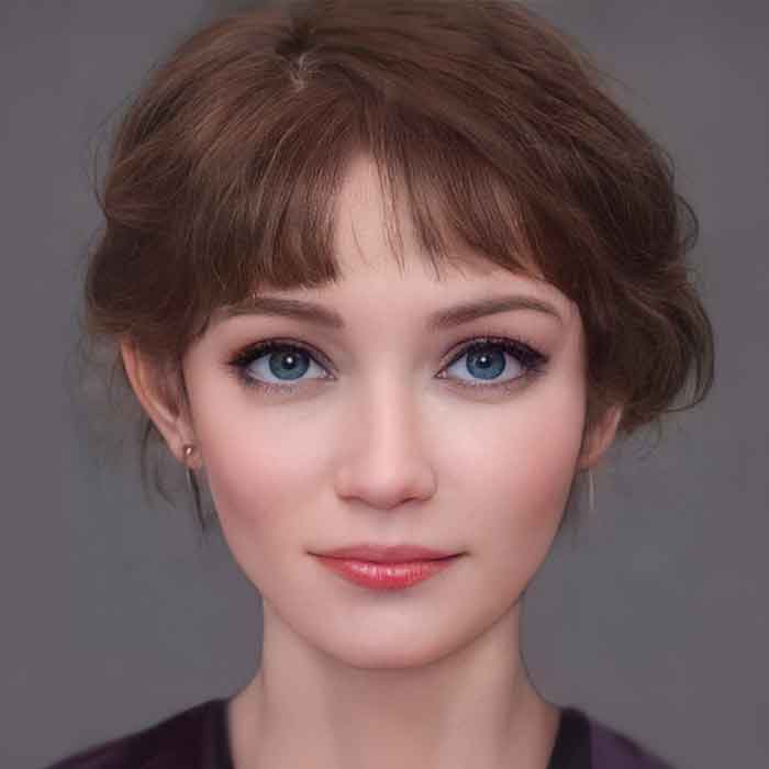 Love the violet eyes. Matches the small amount of purple you can see of her outfit.