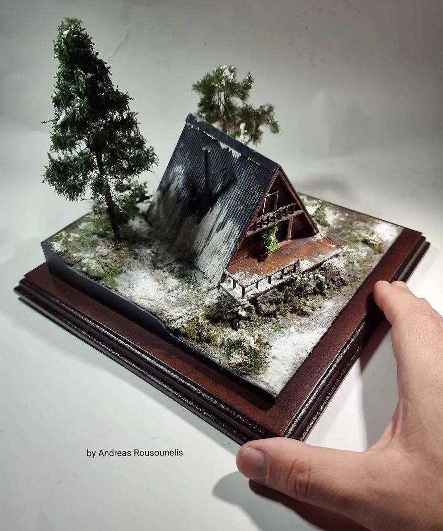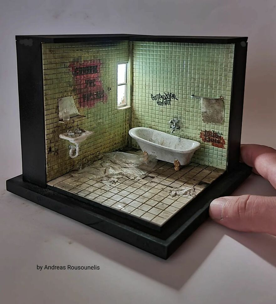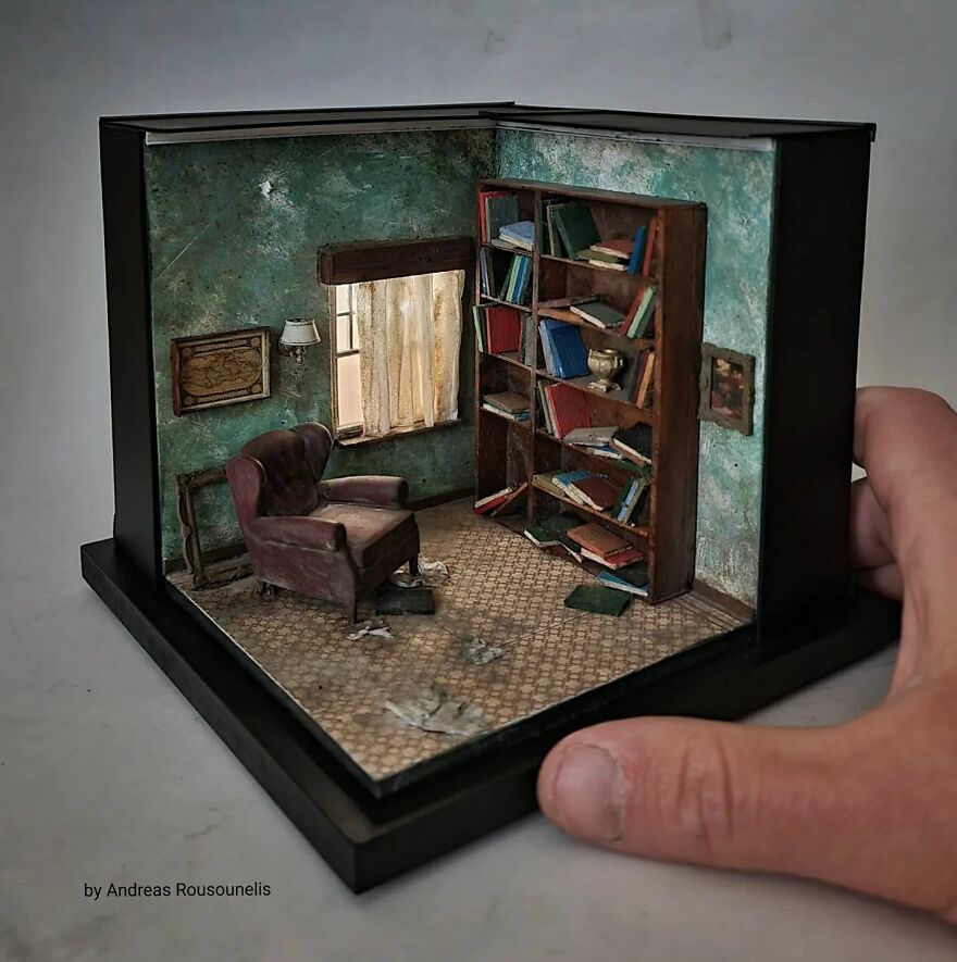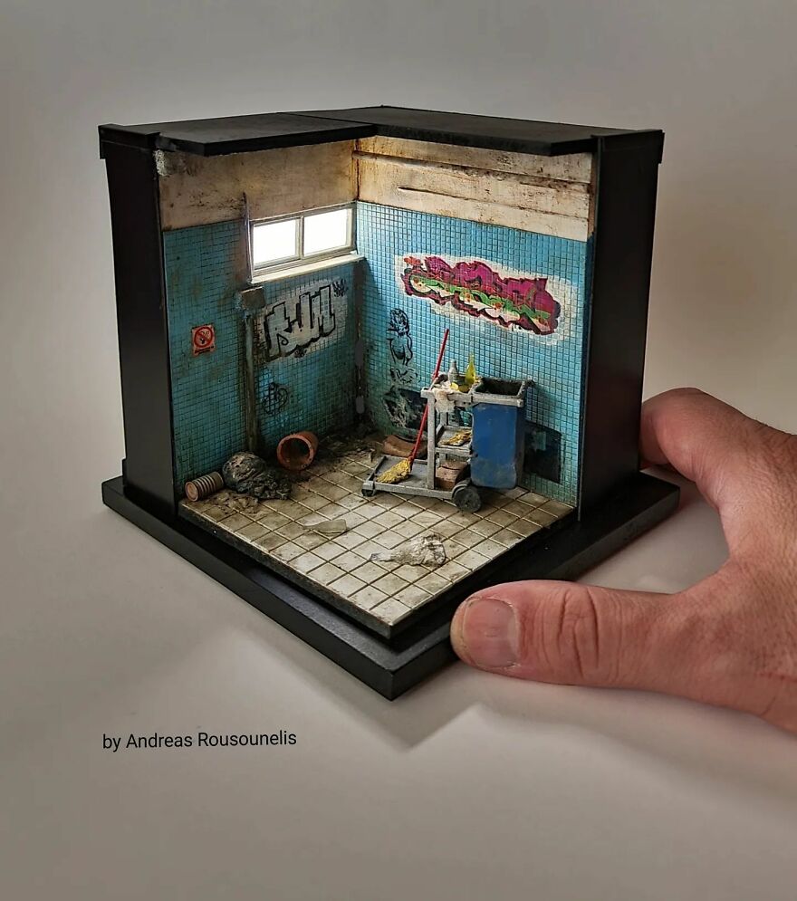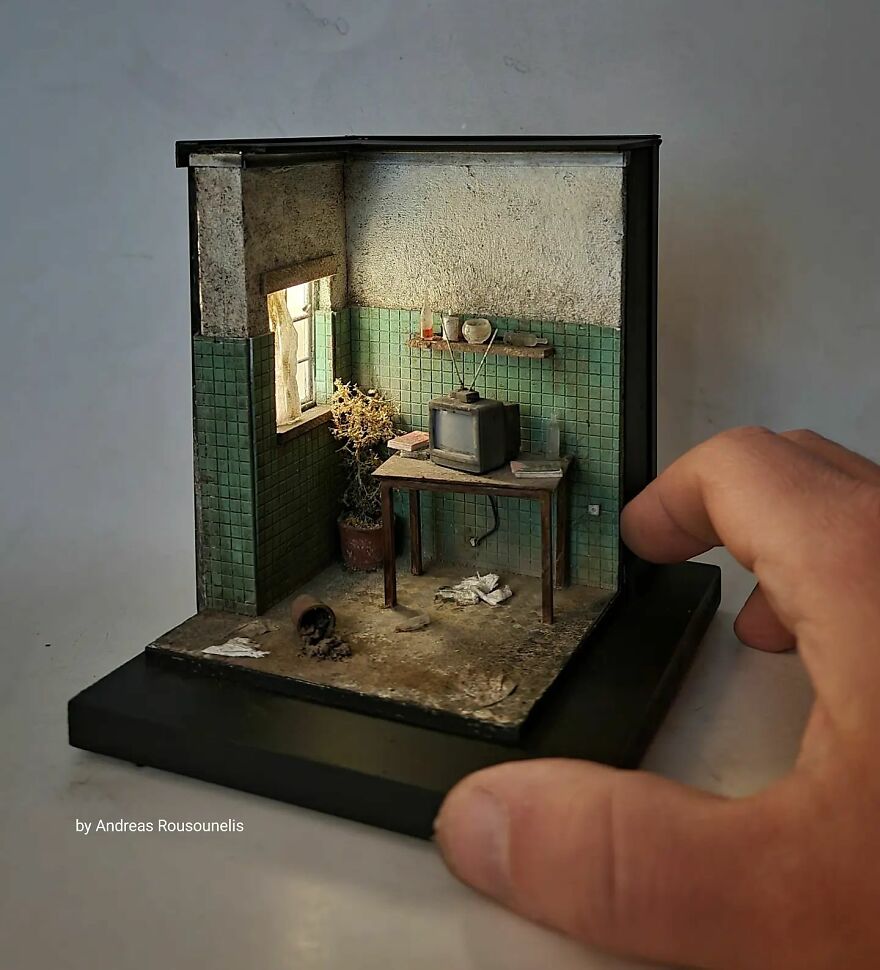 I was born in Athens, Greece in 1974. I have a degree in graphic design and I love art. I started as a scale modeler 20 years ago and for the last 8 years, I have been working as a diorama and miniature artist. My dream is one day to see this artwork in museums introducing the art of miniatures all over the world. Maybe in this way, the world will seem more beautiful…