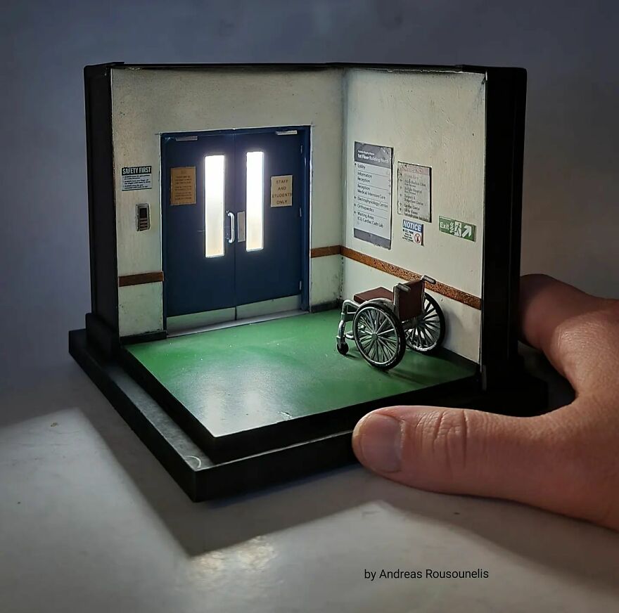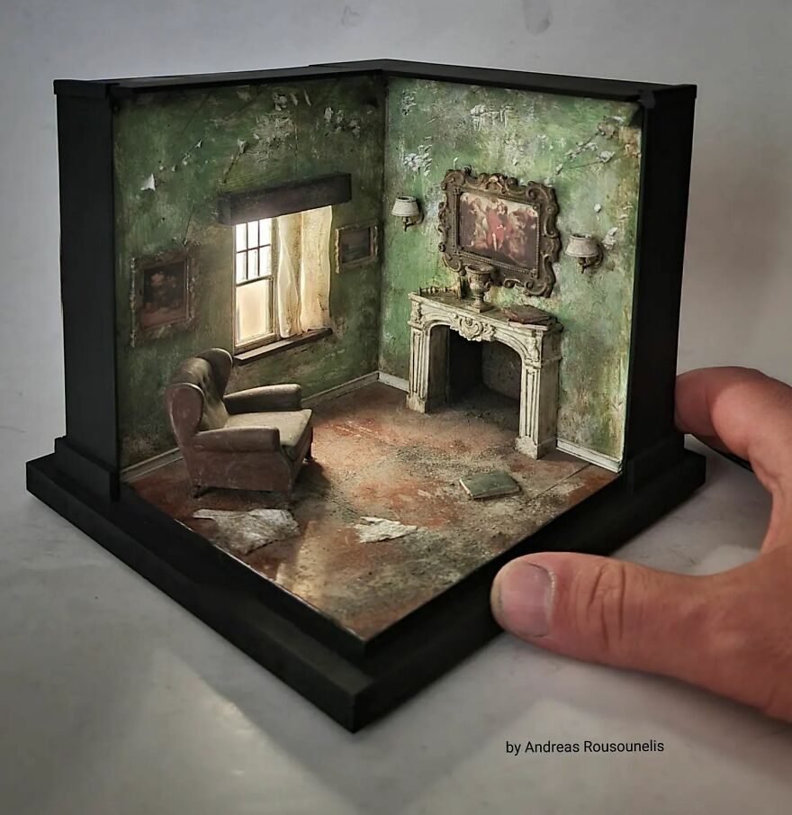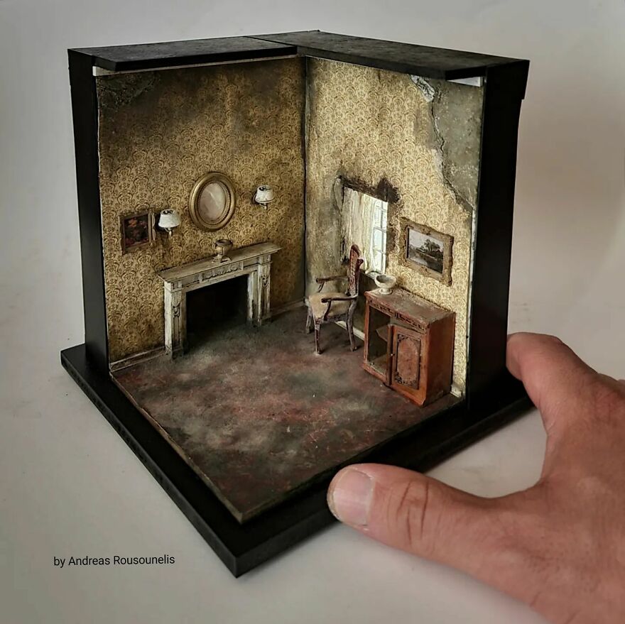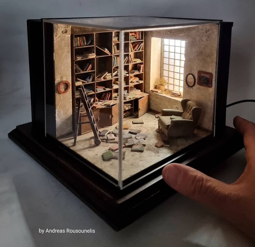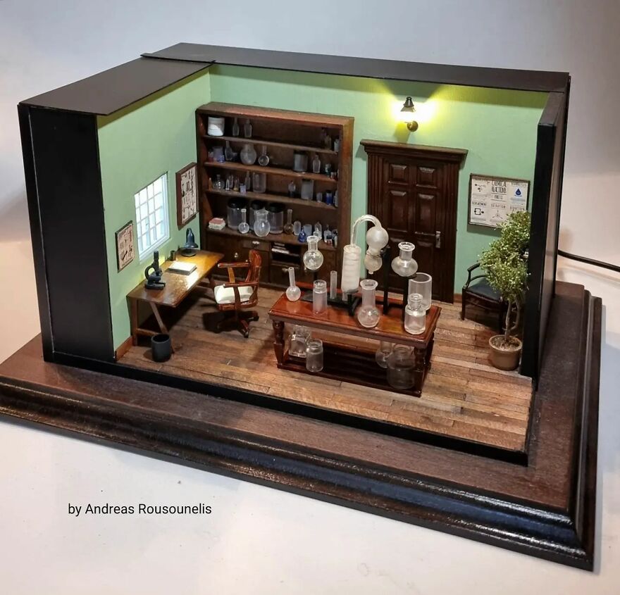 I was born in Athens, Greece in 1974. I have a degree in graphic design and I love art. I started as a scale modeler 20 years ago and for the last 8 years, I have been working as a diorama and miniature artist. My dream is one day to see this artwork in museums introducing the art of miniatures all over the world. Maybe in this way, the world will seem more beautiful…