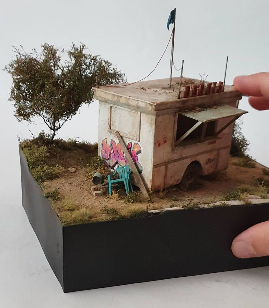 I started to make dioramas as a way to satisfy my desire for artistic expression. I particularly enjoy creating dioramas of abandoned places because they evoke a sense of emotion and atmosphere. Despite being deserted, these settings are full of character and feeling.