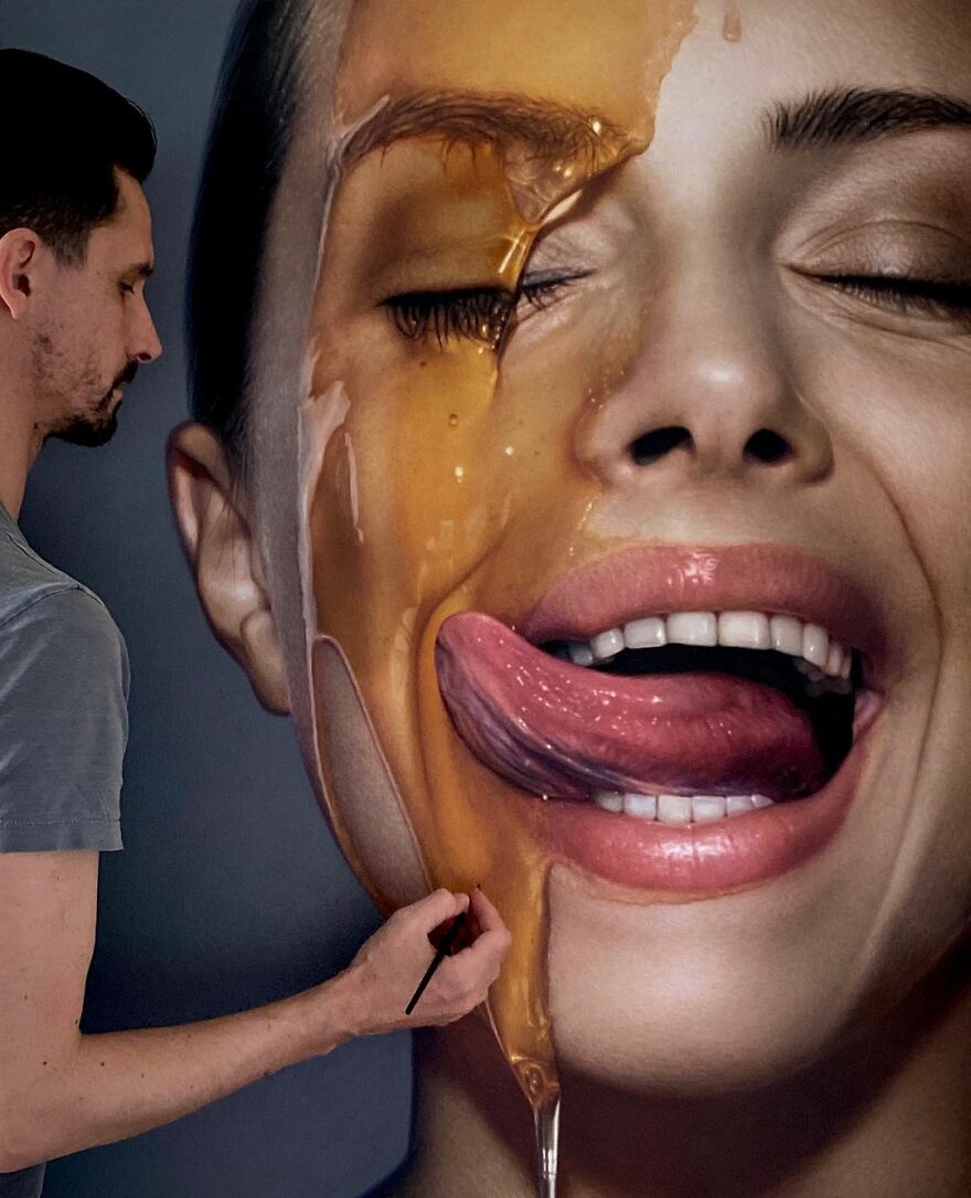 The artist told Bored Panda about how much he enjoys painting a person’s skin texture and capturing it down to the pores. He also said: “I’m currently using caramel on the skin, it increases the contrast and adds a dazzling look. I could change my mind in the future and it could be something else.”
