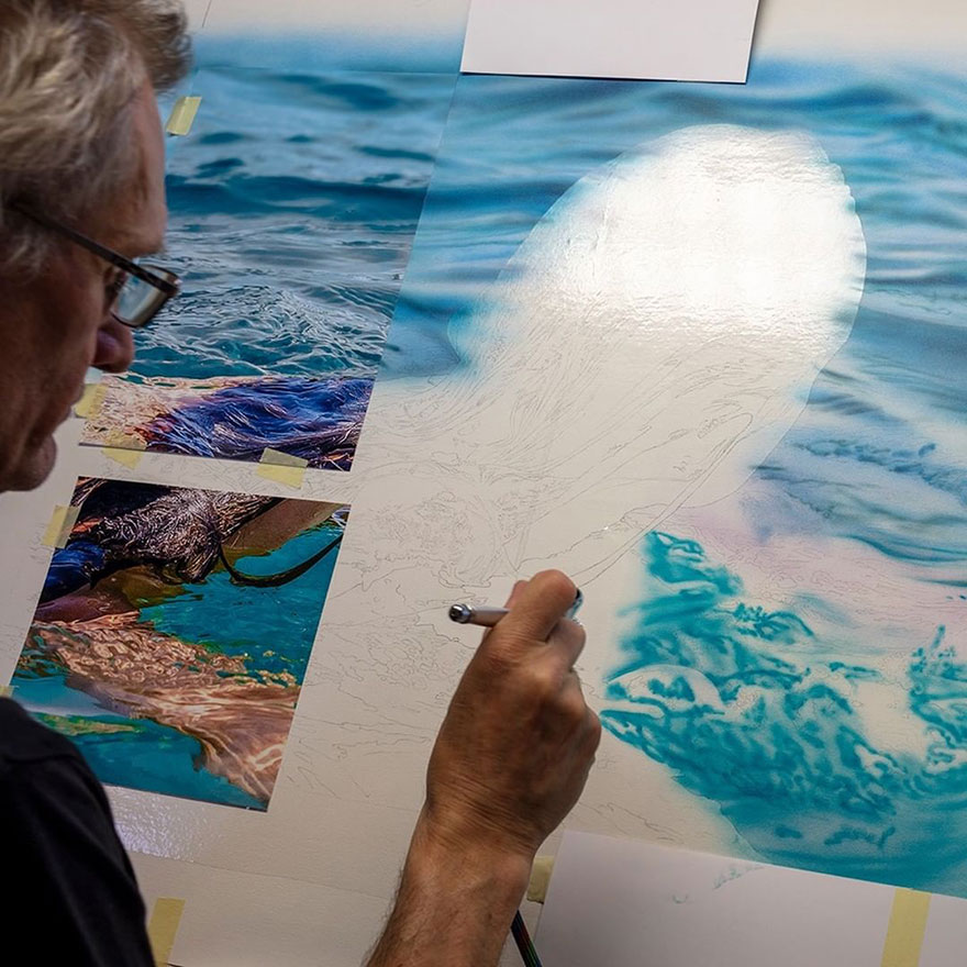 Talking about his creative process, the artist shared: “My workflow for a painting is often like this: I decide what to paint. Then I take a photo of it. Or actually, I usually take lots of photos and choose the best one. When I have decided what size I want to make the painting, I print my reference photo in that same size. I make the sketch with help of a light table to get it as close to the photo as possible. Then I am ready to start painting. Mostly I start with the background and paint the main motif in the end. I work best when I play some music. One favorite genre is movie soundscores. Dramatic, exciting, and sometimes emotional music, without lyrics, works best for me. And it should be loud.”