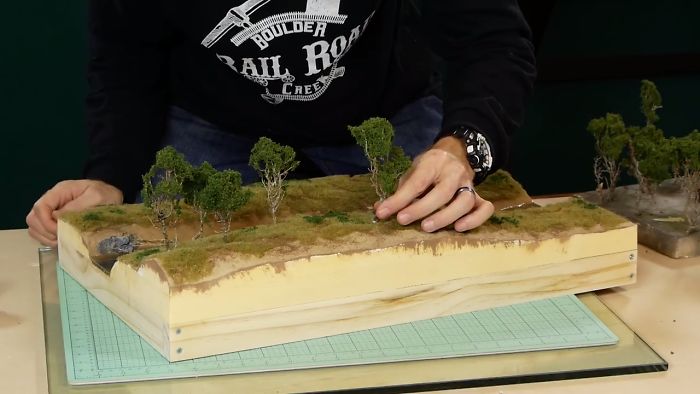 Australian miniaturist Joshua Smith packs an immense amount of urban detail into his miniature worlds, but his colleague Luke Towan likes creating settings that are away from civilization. “The technique I use can be applied for a slow flowing river or stream modeling a lake, modeling rapids and modeling a waterfall as well,” Smith introduces his work. “A lot of modelers will avoid adding a water scene to their model railroad layout or wargaming terrain because in the past a lot of others have had bad experiences using the various water products, however… with some careful planning and proper preparation, you should have no problems working with these products.” He has spent over 40 hours building the setting which cost him about $105. “The vehicle was the most expensive at $50 because I had to order it from Europe and pay a large postage fee.”