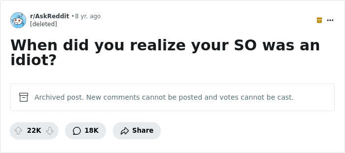 Edit: My SO is not stupid btw, she's very book-smart and loves to read and write. That conversation was just a real face-palm moment that I still laugh about now.