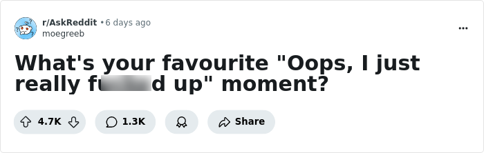 One way to do that is to indulge in other people’s blunders. After all, misery loves company. Take this Reddit post by user Moegreeb, for example. It asked everyone on the platform to describe their favorite "oops" moments, and oh, girl—did they deliver!
