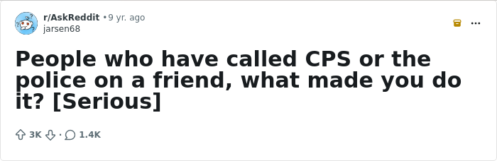 But it's never easy to make the call. The folks who shared these stories could probably tell you that. The experiences come to you from an online thread where someone asked: "People who have called CPS or the police on a friend, what made you do it?" Some of these stories have good endings, others not so much, but don't let that stop you from believing that sometimes one call can change someone's life.