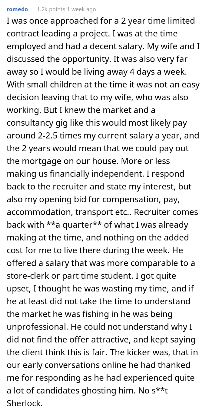 People felt just as flabbergasted about this whole situation, others shared their own similar experiences with recruiters