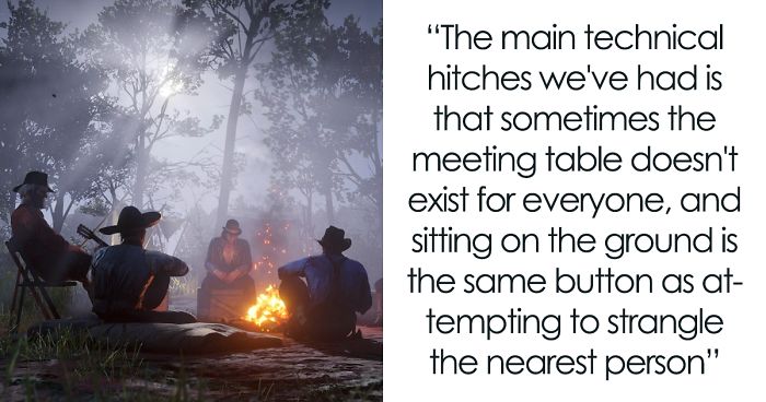 Bored Panda reached out to Viviane for additional comment and she provided some new info. “I am a freelance artist specializing in interactive projects,” she introduced herself. When asked why they chose Red Dead Redemption as their place for online meetings, the woman revealed that it was mostly because of fun. “We got very tired of Zoom and missed having meetings and going out,” she explained.