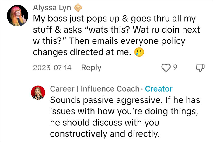 On paper, much of this advice makes a lot of sense. Some might even see it as commonplace. However, as stated before the popularity of the content does indicate that many people find it useful, so we were curious to hear her take on why some folks really struggle with spotting red flags. “Honestly, most people grew up with some level of trauma or fear of people in authority positions that makes it very hard for them to question patterns or behaviors that they think are wrong. They may even believe that harmful behaviors are normal. Many companies allow, implicitly or explicitly, these things to continue happening, and people feel too small or afraid to do anything about it,” she shared. Unfortunately, this can even go beyond being a side effect of a hierarchical company and stem from “fear” being seen as a legitimate strategy in some organizations.