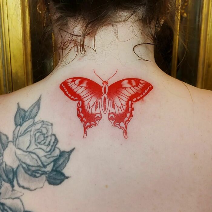 Red Ink Butterfly Tatttoo