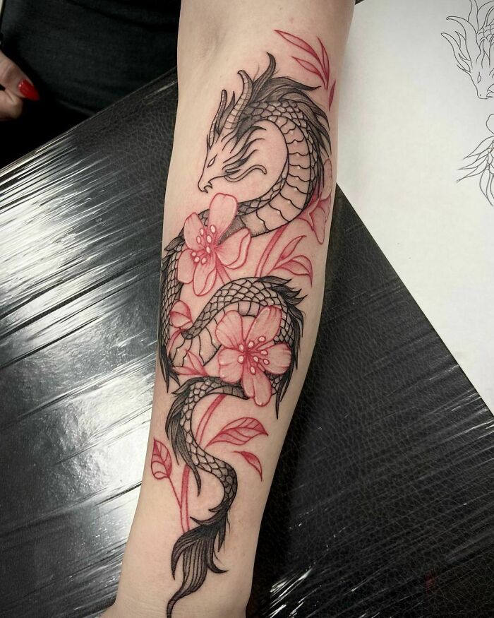 Everyone and their mother has probably seen a red dragon tattoo somewhere on the internet. No wonder, since that's pretty much the first tattoo that pops up if you search for red ink tattoo ideas. Although it has been surfacing online for quite a while and is no longer an original concept, it looks pretty sick; we must admit that.