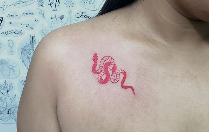 Red Ink Small Snake Tattoo