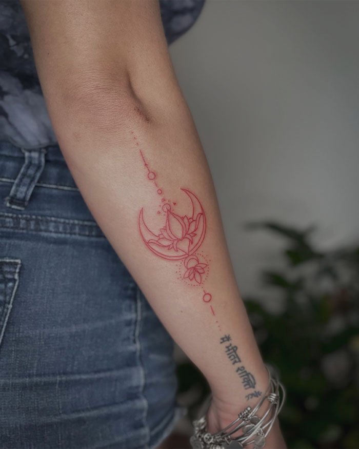 Red Ink Moon An Flower Tattoo