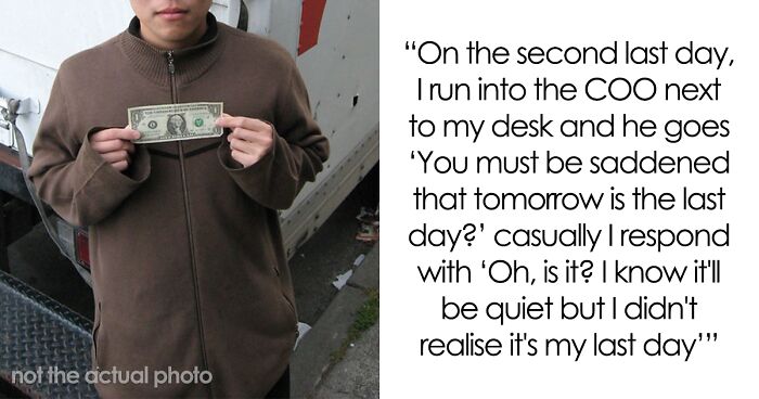 “Wasn’t made redundant like everyone else in the company so kept showing up to work until the end to do nothing” – this online user took it to r/MaliciousCompliance to share how his former company tried to save a couple of bucks in redundancy payout but ended up providing him with an extra month’s pay instead. The post has managed to receive nearly 20K upvotes and 399 comments discussing this sweet revenge.