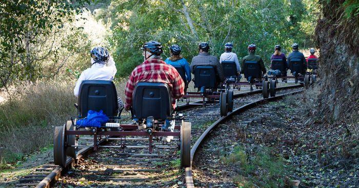 People can enjoy the historical tracks in quite a few different ways, from sharing their cookies with Santa Claus aboard the Magical Christmas Train throughout December to celebrating fall by hopping onto the Pumpkin Express. But recently, a Fort Bragg excursion on railbikes has become more and more popular. After seeing the photos, it becomes quite clear why.