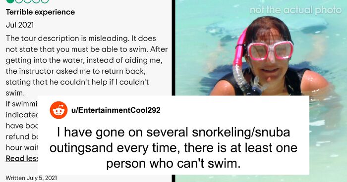 A man who booked a tour and was expecting to experience all the magic of snorkeling in the North Pacific Ocean ended up very disappointed. He left a one-star review evaluating his experience as ‘terrible’ and wrote a comment criticizing a tour description as ‘misleading’. The only problem this man had – he was not able to swim and according to him, he was not warned about such a requirement by the agency. On the one hand, for most people who know the meaning of the word “snorkeling,” it might seem self-explanatory that one needs to be able to swim in order to snorkel, similarly to how you need to know how to write if you want to write a poem.