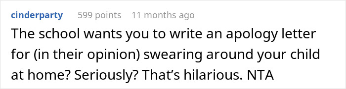 “AITA if I refuse to write an apology letter to my son’s school?” – this internet user took to one of Reddit’s most judgmental communities, asking its members if he’s indeed a jerk for refusing to write an apology letter to teachers and administration for teaching their 3-year-old the b-word. The post managed to garner nearly 2K upvotes as well as 345 comments discussing the situation.