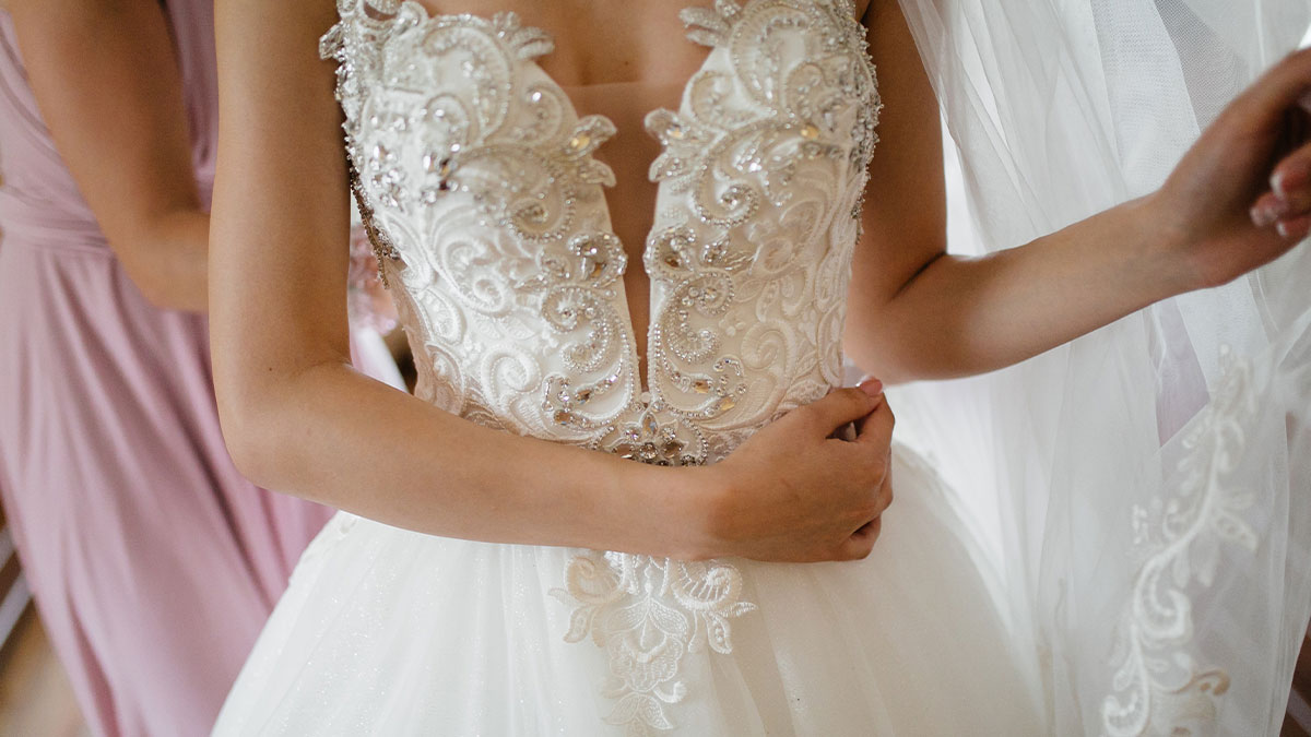 Wearing a wedding dress to someone else’s wedding is a big no-no in some etiquette rulebooks