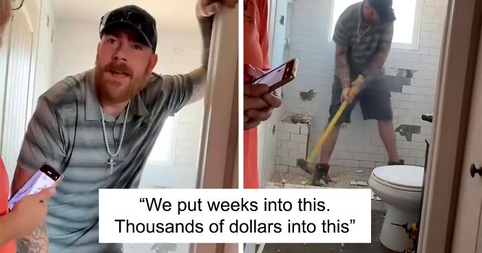 In the video, you can see an angry man with a sledgehammer saying, “We put weeks into this. Thousands of dollars into this” and he starts smashing and destroying the walls. The woman who is filming is asking him to stop, but the man’s answer to this is just, “Is someone going to pay me?”