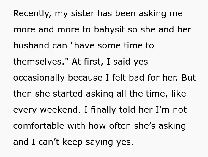 Just like one childfree Redditor was his sister’s free babysitter, every weekend, until he finally set boundaries and got labeled selfish for it.