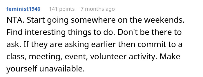 Load More Replies...I love these kind of parents, who are pressuring a child-free brother or sister in free babysitting, because fAmiLy. They very well can babysitt their own grandkids, because fAmiLy.