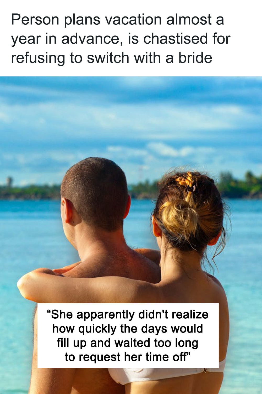 Person Plans Vacation Almost A Year In Advance, Is Chastised For Refusing To Switch With A Bride