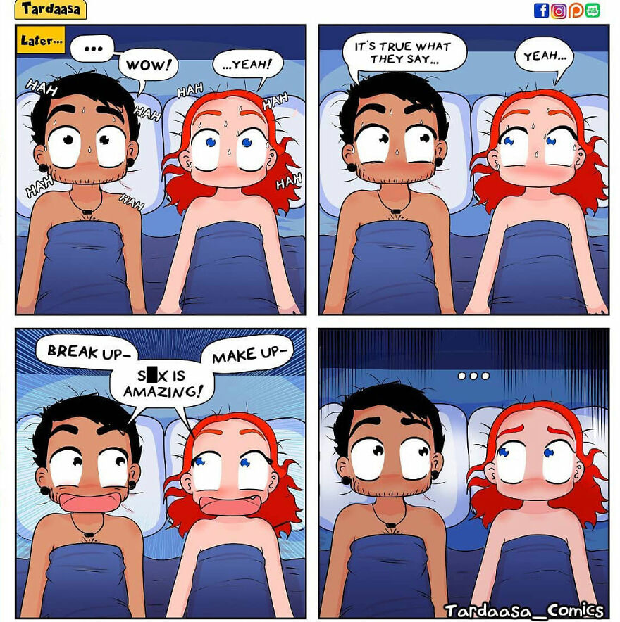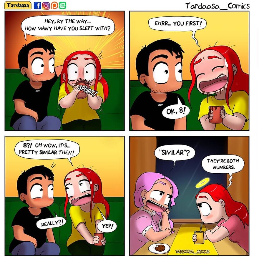 Tardaasa Comics covers a diverse range of topics, from relationships to societal issues. We were wondering how the artist chooses the themes for her comics. We found out that: “There is no grand plan behind the comics, it's usually my latest thought coming down on paper. I’ve lived a pretty chaotic life and Tardaasa and its followers have always been a comforting presence. I get a thought, I put it out to the world, to hopefully make people laugh and to see others' perspectives on things. I’ve learned a lot through my comics and the responses they’ve gotten over the years!