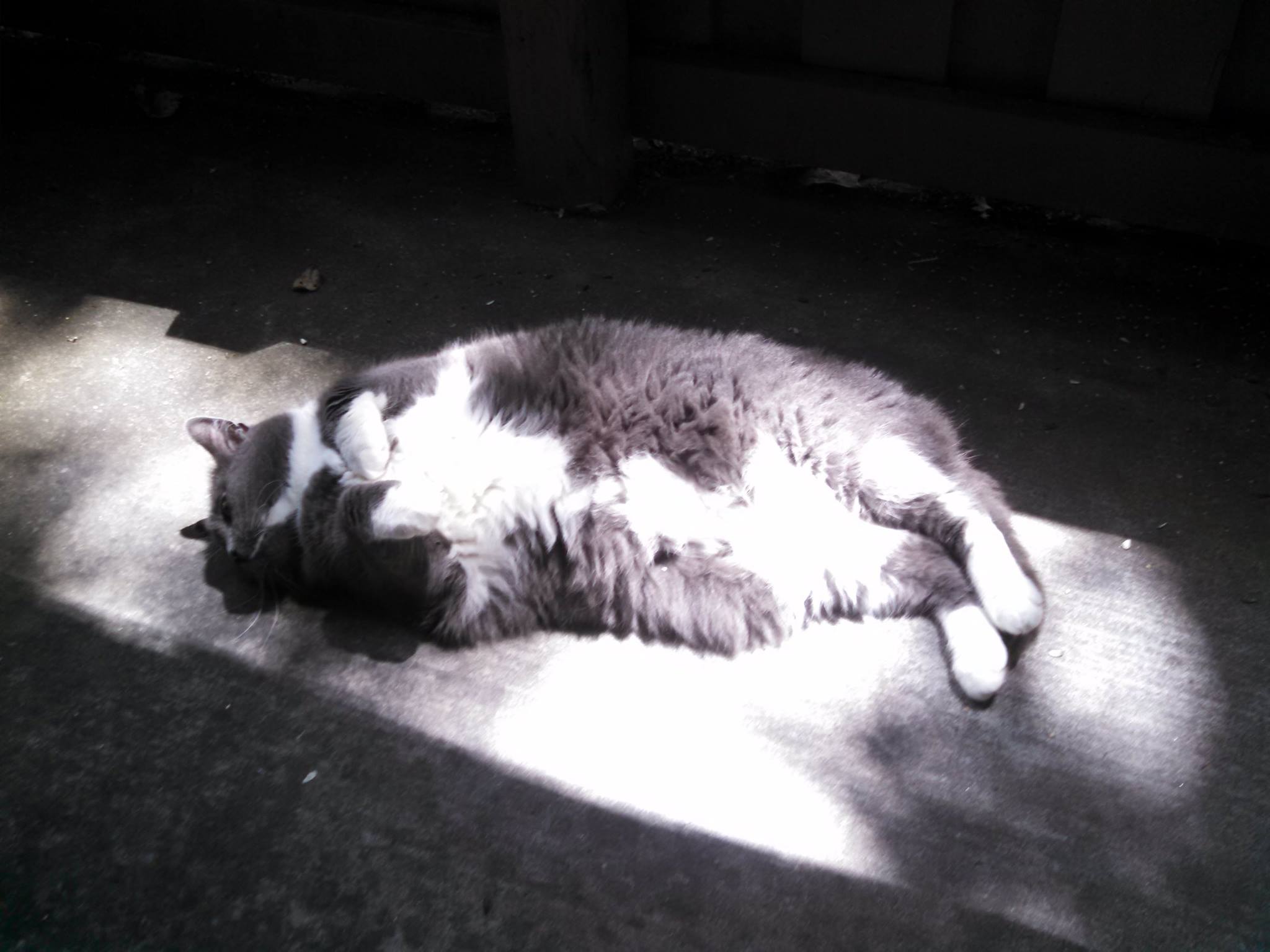 What is wrong with people?! The man in the apartment downstairs from my nephew had to go into a home, and his relatives cleaning out his place said they were just going to open the patio door and let his cat, Kiki, walk away. Kiki now happily lives one floor up and is a very sweet kitty.