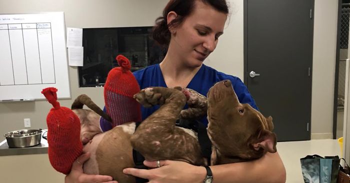 Judging from his wounds, he was a ‘bait dog’ used for dog fighting