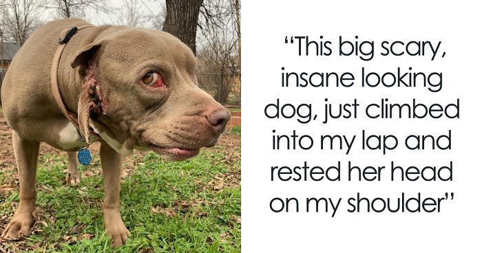 That day I took her into my office to evaluate her and she immediately crawled into my lap. This big scary, insane-looking dog, just climbed into my lap and rested her head on my shoulder. I adopted her and we have been inseparable ever since.