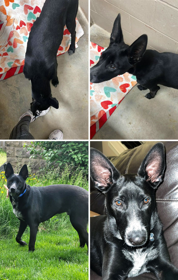 I love the ears on all these dogs. When they’re first rescued they’re usually pulled back, indicating fear, but they’re all the way perked up in the second photo, showing that they’ve been given a loving family that has given them the confidence to feel safe around