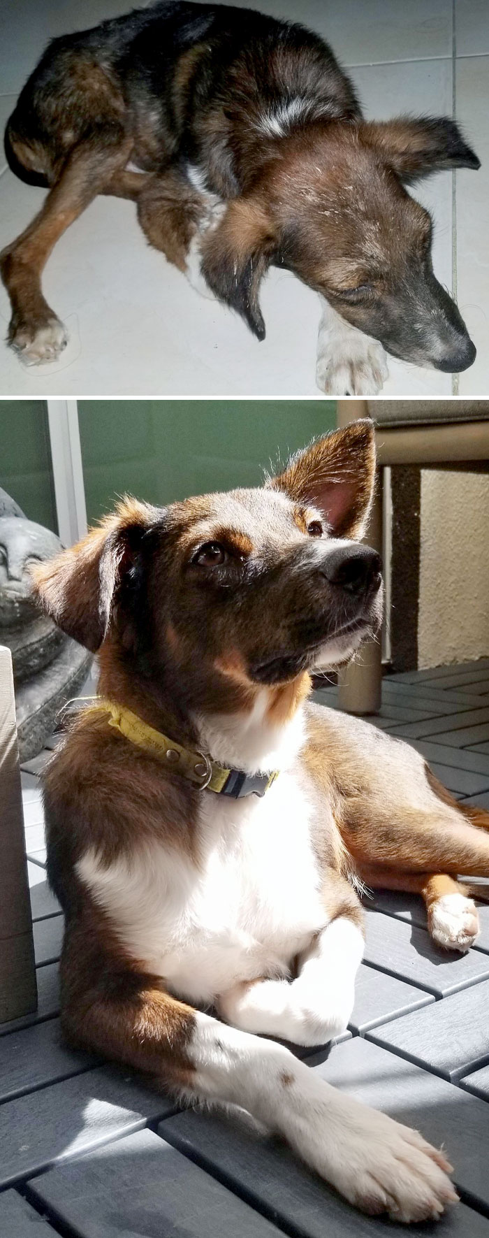 Before vs. After. She Lived In The Jungle Behind An Orphanage In Mexico With A Pack Of Strays, And Now She's Our Sweetheart, Chonky Princess, That We Love
