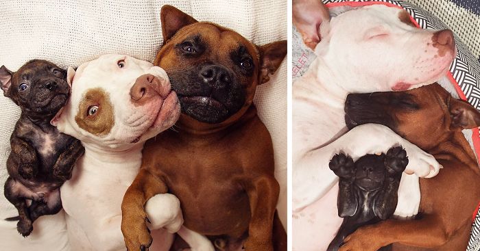 Their newest “foster bro” is a puppy called Potato. He was one of seven 5-week-old puppies taken from their mum to be sold at a pet store. He and his siblings had wounds, worms, mange and fleas. They were also weak and dehydrated. But as you can see from these adorable pictures, Pikelet and Patty Cakes are determined to help him recover with some good old-fashioned fraternal love. Anybody who thinks that man is a dog’s best friend only needs to look at this wonderful trio to understand that a dog’s best friends are actually Pikelet and Patty Cakes!