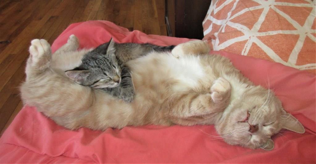 That's incredible. I've had cats become comfortable around each other with minimal fuss but I don't think I've ever seen two cats completely hit it off from day one.