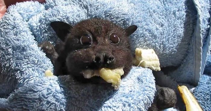 Has life got you down today? We’ve got exactly what you need to turn it around – a baby bat going absolutely HAM on a banana until her tiny cheeks are stuffed to the brim.